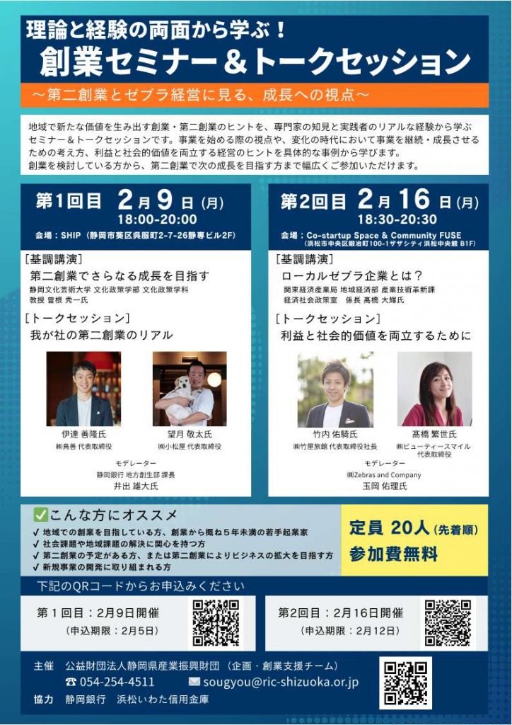 ホーム > お知らせ一覧 > 【参加募集】創業セミナー&トークセッション 「第二創業とローカルゼブラに学ぶ、地域で成長し続ける事業のつくり方」