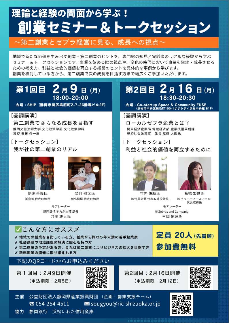 2026年01月19日【参加募集】創業セミナー&トークセッション 「第二創業とローカルゼブラに学ぶ、地域で成長し続ける事業のつくり方」