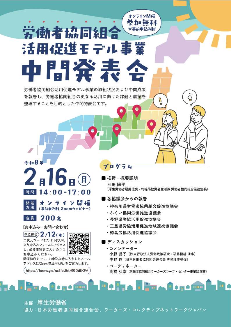 2026年02月2日【参加募集】労働者協同組合活用促進モデル事業 中間発表会