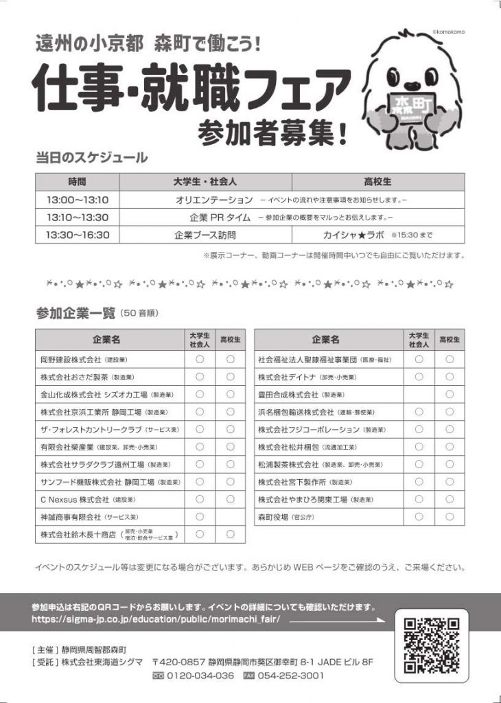 森町では、大学生や専門学生等を含む就職・転職希望者を対象とした「仕事・就職フェア」を開催します。