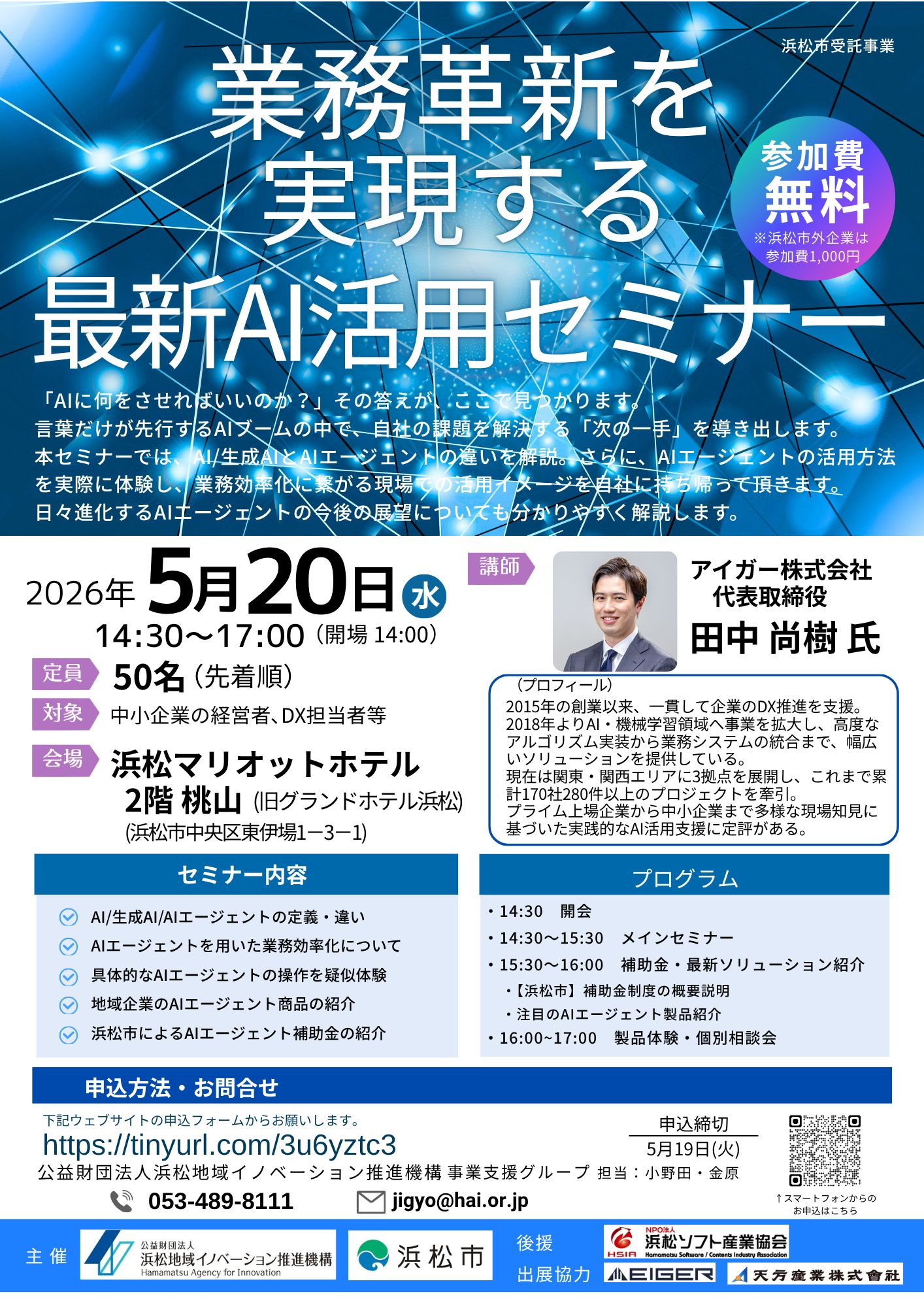 2026年04月24日【参加募集】5/20「業務革新を実現する最新AI活用セミナー」開催のお知らせ